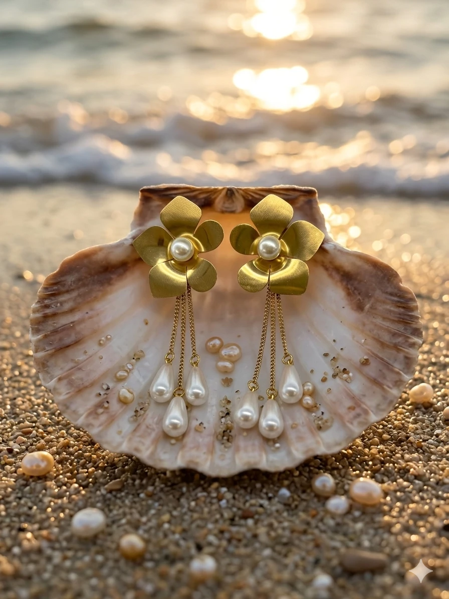 To preserve the luster of your jewelry (Internal Link), it is important to treat your Aurora Flower Chain Earrings with care. Avoid direct contact with perfumes, hairsprays, and moisture. Store them in a dry, soft-lined jewelry box. For more information on the history and care of organic gems like pearls, you can visit this guide on pearl jewelry.