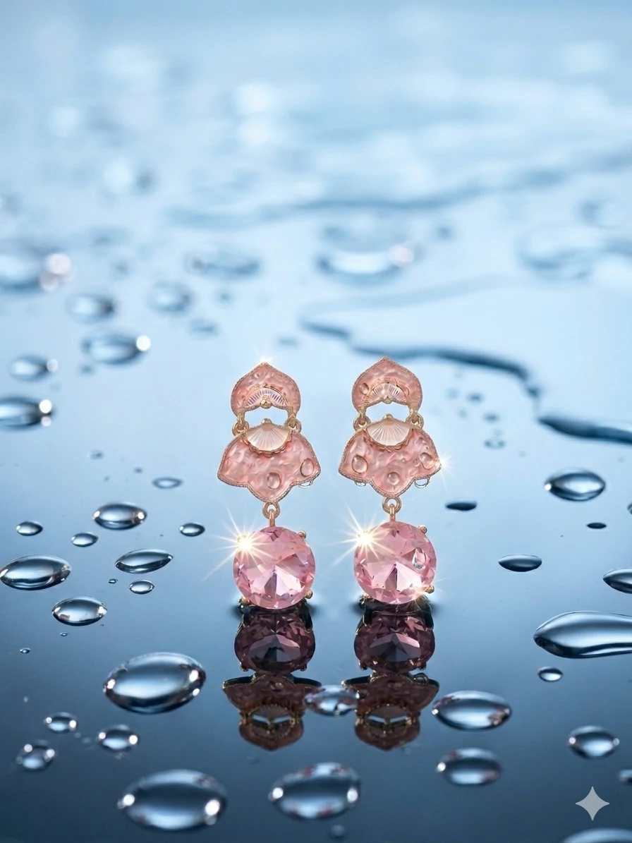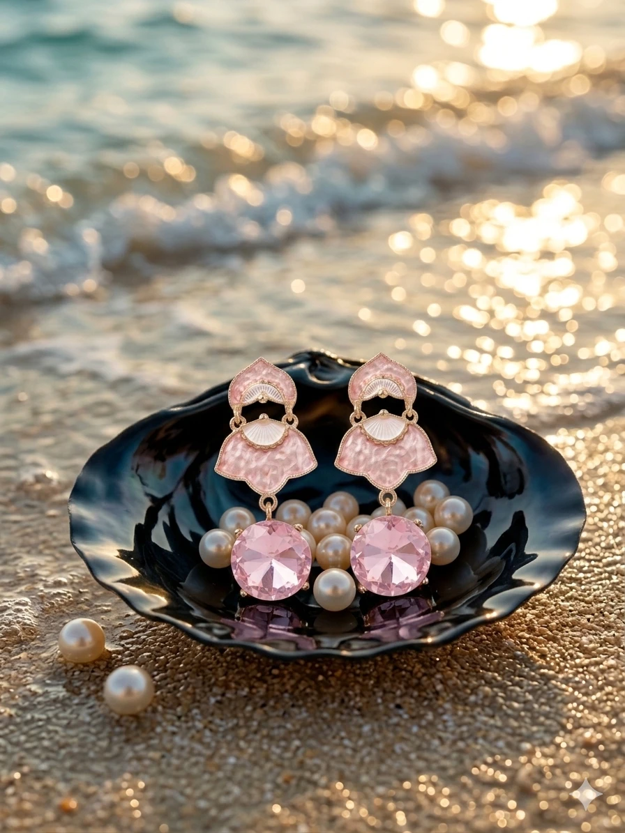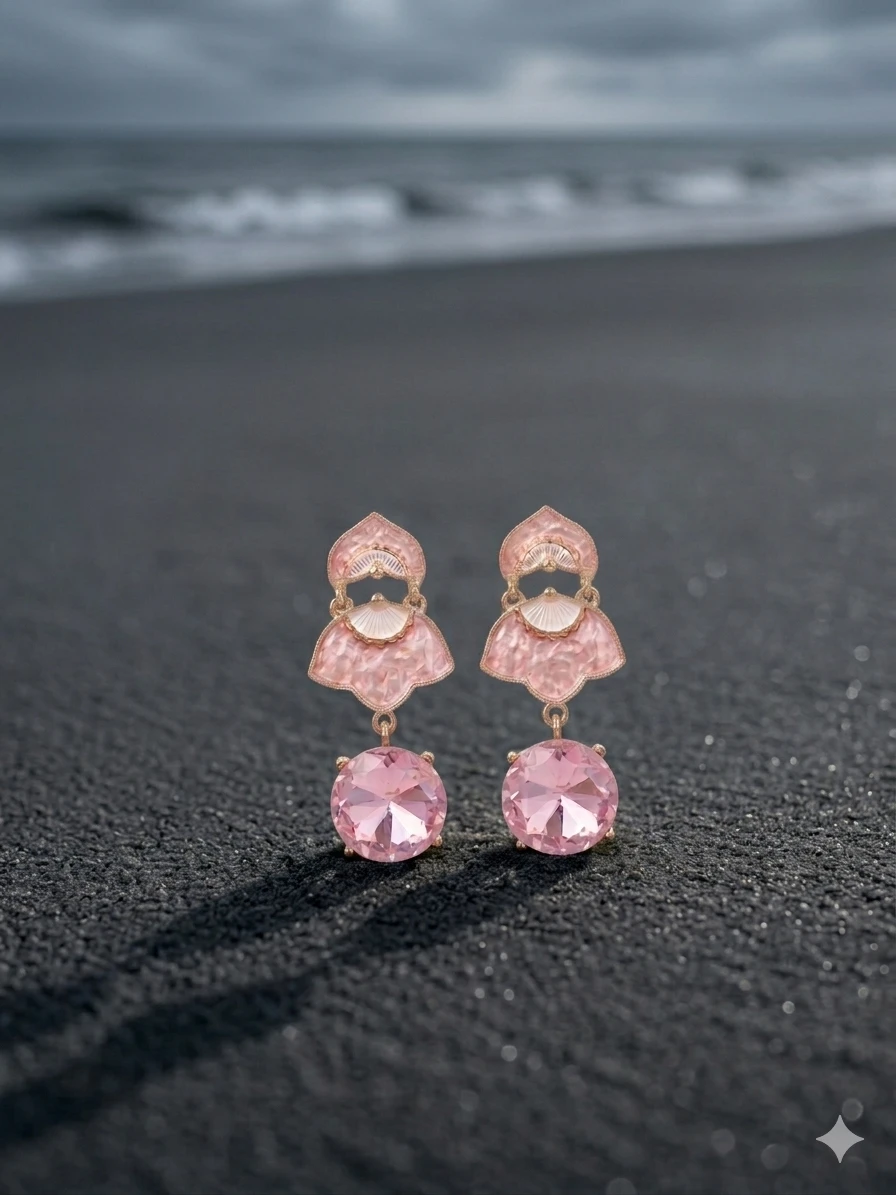 Adding to their charm is the stunning round-cut crystal drop that delicately dangles at the base. Designed to catch and reflect light beautifully, the crystal enhances the earrings with a subtle sparkle that elevates your overall look. The combination of blush enamel and radiant crystal creates a harmonious balance between elegance and glamour, making these earrings suitable for both minimal and dressed-up styles.