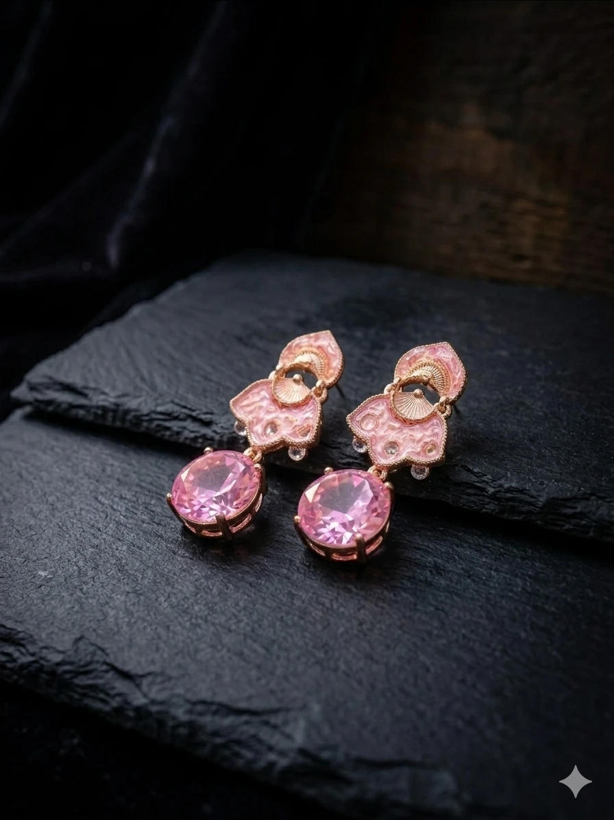 Pair these blush pink danglers with pastel outfits, floral dresses, or neutral tones for a soft, sophisticated look. They also complement traditional ensembles beautifully, adding a modern twist to ethnic wear. For a polished appearance, style them with minimal makeup and soft waves or a sleek bun to highlight the earrings.