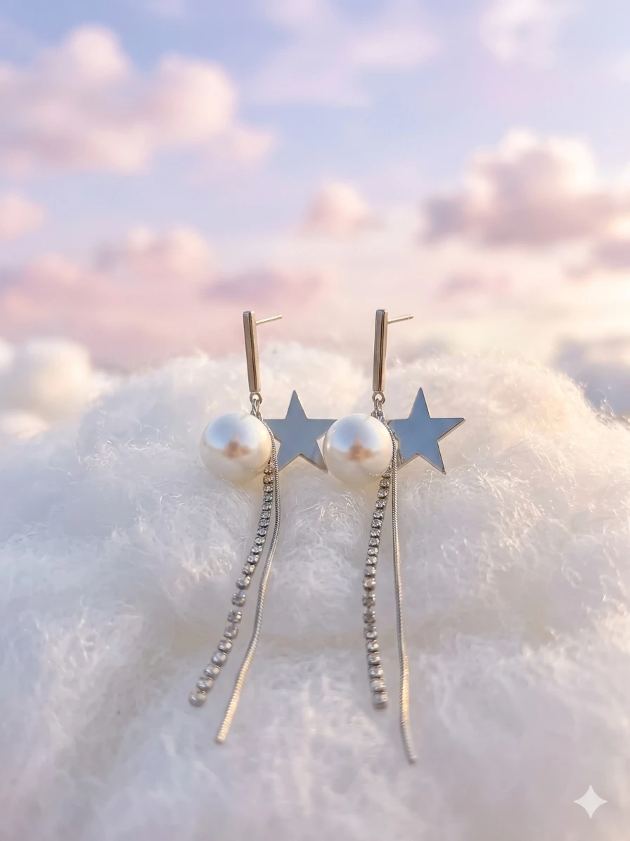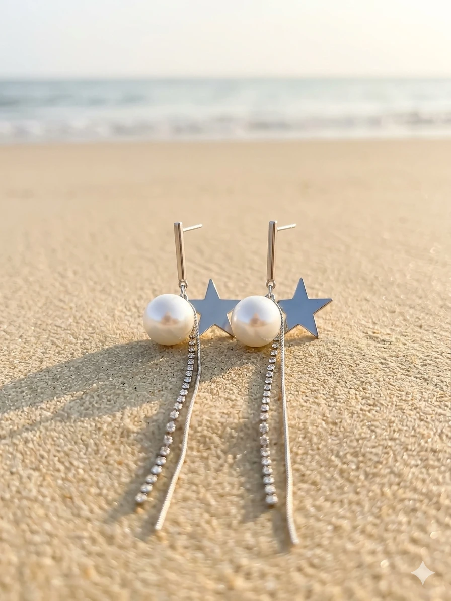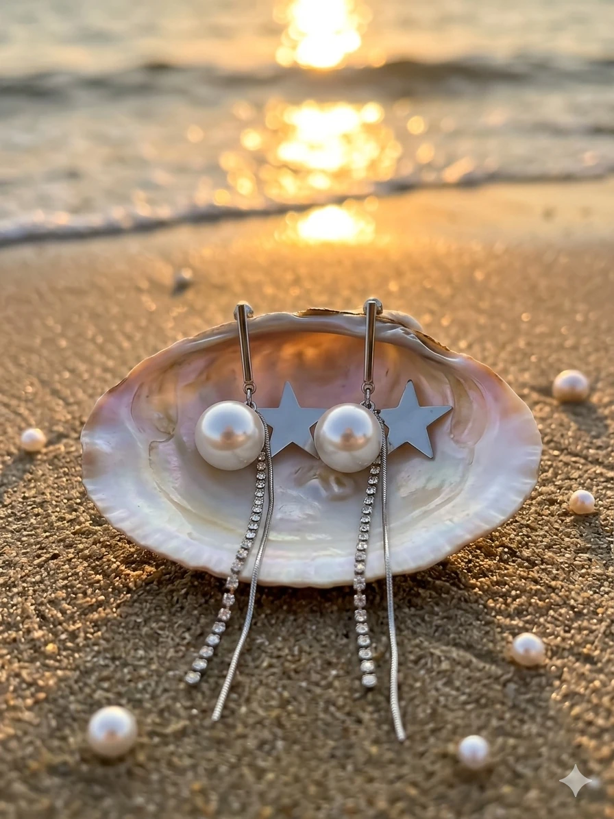 - Celestial Design: A high-shine silver star meets a radiant, creamy pearl for a look inspired by the night sky.