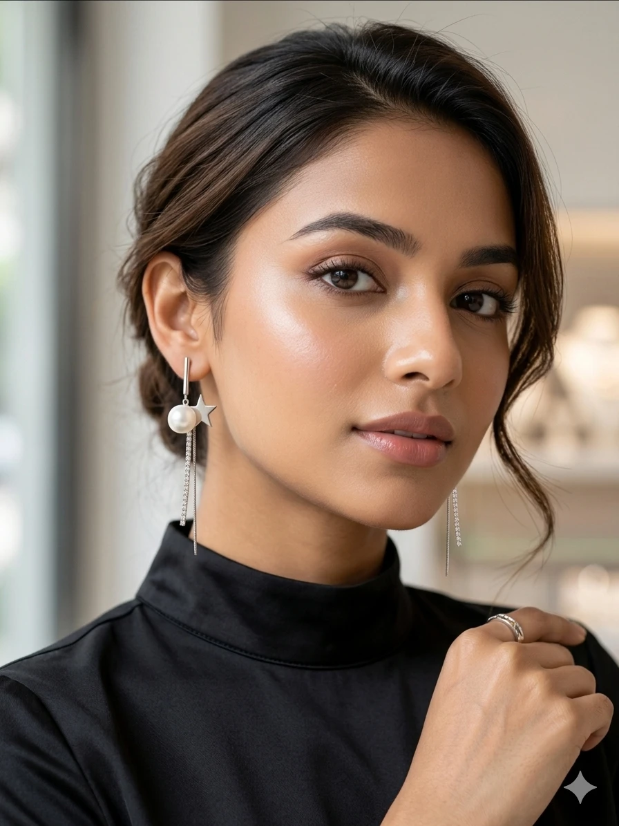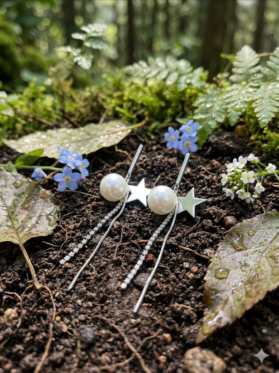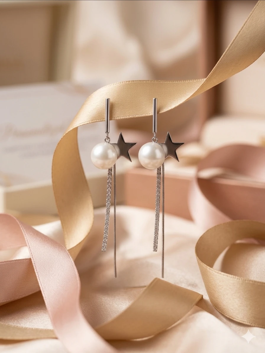 - Celestial Design: A high-shine silver star meets a radiant, creamy pearl for a look inspired by the night sky.